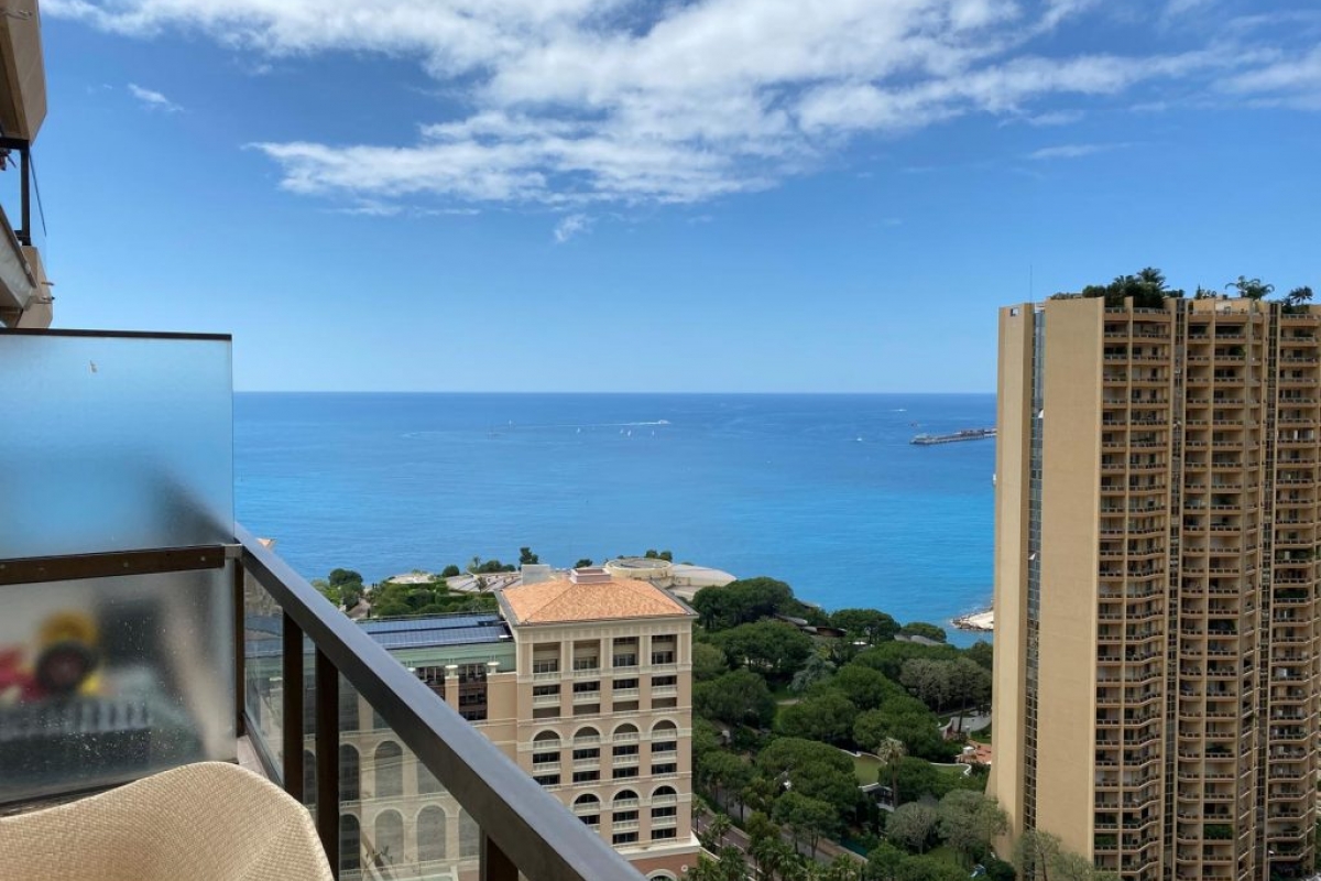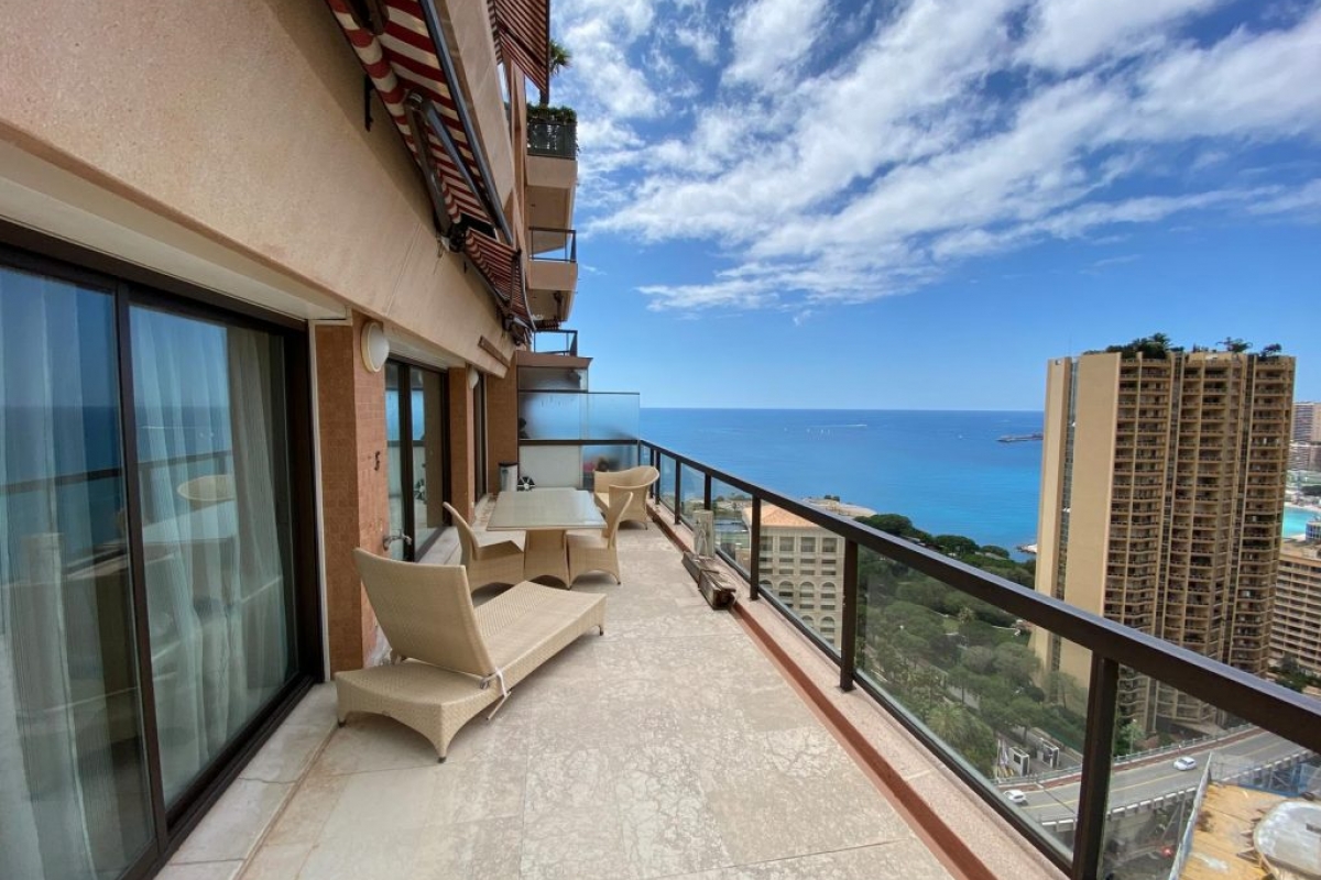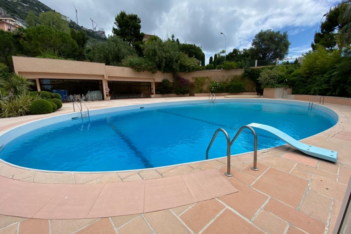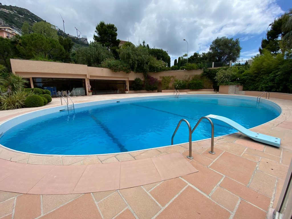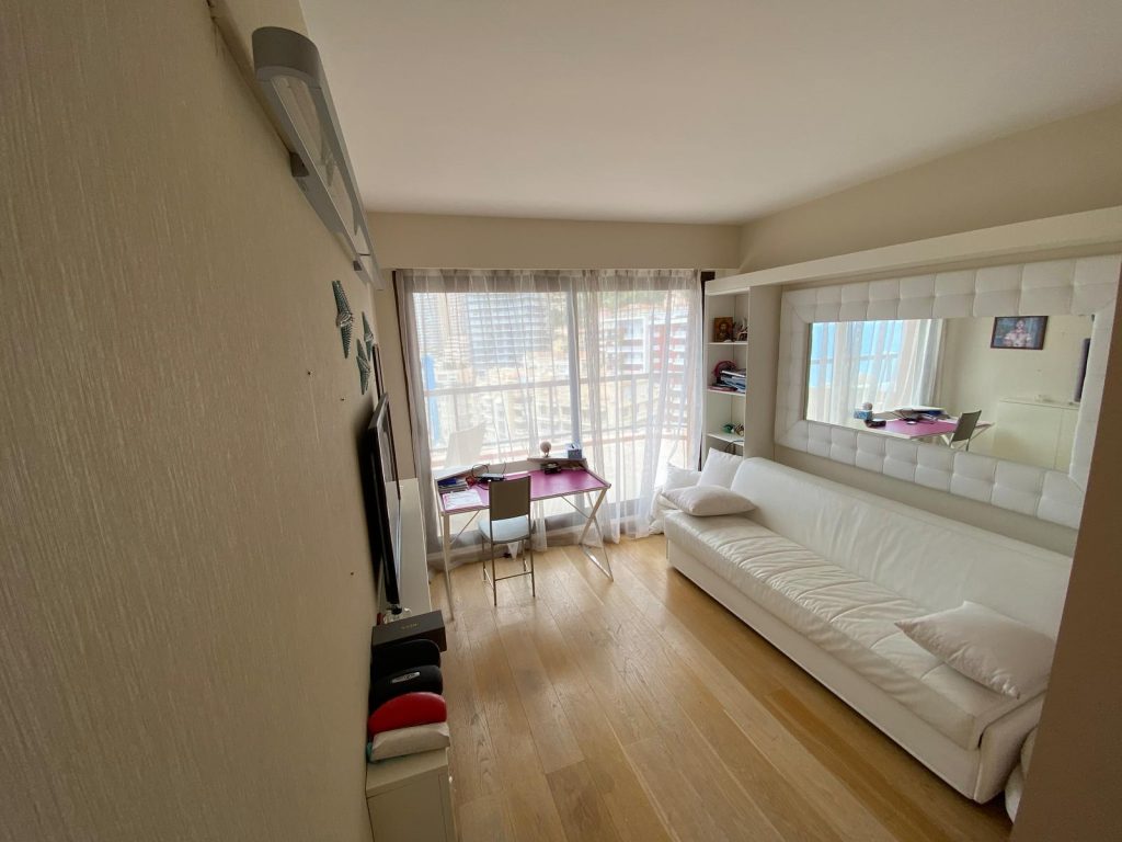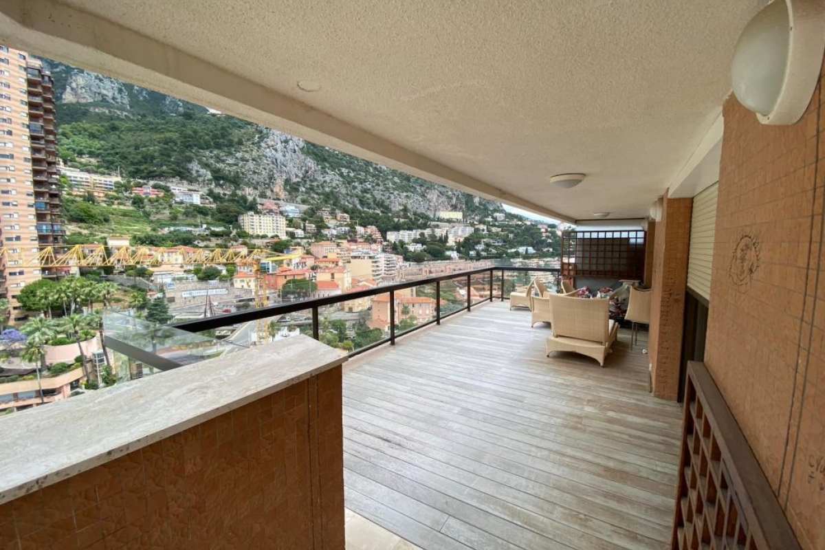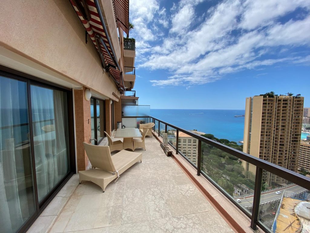 Composed of an entrance overlooking the bright living room boasts large glass-enclosed windows. A kitchen with small dining area gives direct access onto the large terrace that surrounds the entire apartment. The master bedroom with it’s en suite bathroom is located in extension of the living room.