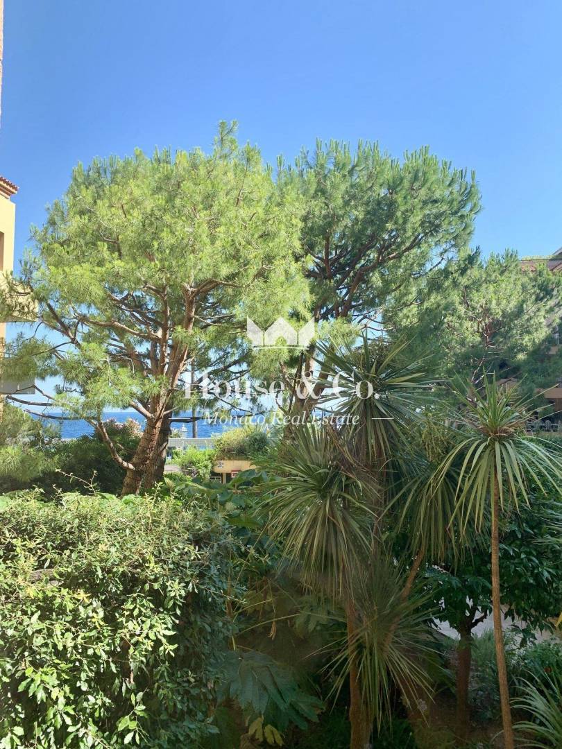 2 bedrooms apartment with a total surface area of 130 sqm, beautiful view of gardens and sea. The apartment was completely renovated with precious finishes including Dinesen parquet flooring for all Except those of the bathrooms, and Carrara marble for the bathrooms. The apartment is protected by an alarm system connected with Fontvieille police.