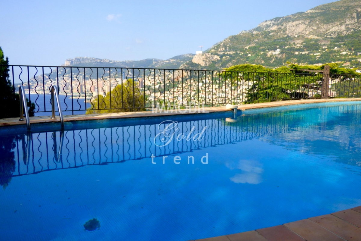VILLA ROQUEBRUNE TORRACA - Villa for sale in a plot of 1500 sqm, located in one of the most residential districts of Roquebrune Cap Martin, only a few minutes from the boundary of the Principality of Monaco. Built during the '60s by the well-known architect Andrei Svetchine, the house has five bedrooms, six bathrooms, beautiful balconies, an infinity pool of 15m x 5x. Two parking spaces.