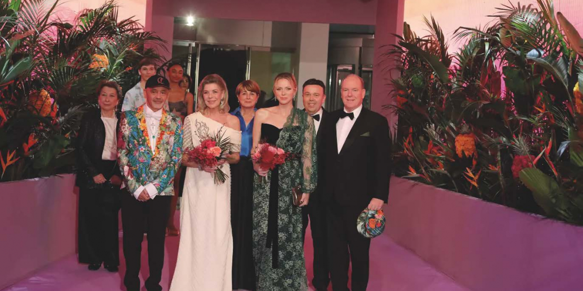 Around the Sovereign, Princess Charlene, and Princess Hanover, 800 guests embarked on a tropical journey, the theme chosen by the evening's artistic director, Christian Louboutin. A motto respected from the very beginning of this Sunset Rose Ball.