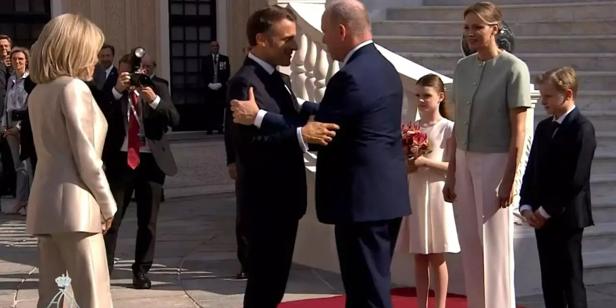 Given the extremely tight schedule of this historic state visit to Monaco, this was the only window of free time identified for the presidential couple. Around 7:30 p.m., after leaving the Prince's Palace, and before returning for the State Dinner organized in their honor, Emmanuel and Brigitte Macron made a brief stop at the Hôtel Hermitage in Monte Carlo, before exiting through the main entrance and receiving the first greetings from those seated on the terrace.
