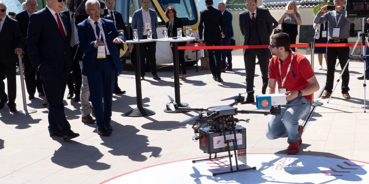 Hier, dans le Ever Monaco, S.A.S le Prince Albert II, (S.E. M.) Bernard Fautrier, VicePrésident de la Fondation Prince Albert II et Jean-Luc Delcroix, Directeur de La Poste Monaco, ont assisté à la première livraison d’un colis postal par drone.
