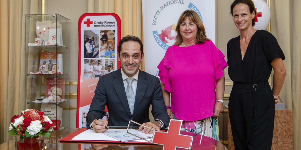 Frédéric Platini, Secrétaire Général de la Croix-Rouge monégasque, signait ce jeudi 25 juillet la Charte d'engagement du Pacte National pour la Transition Energétique, en présence de Marie-Pierre Gramaglia, Conseiller de Gouvernement-Ministre de l’Équipement, de l’Environnement et de l’Urbanisme, et Annabelle Jaeger-Seydoux, Directrice de la Mission pour la Transition Energétique (MTE).